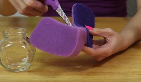 sigue los pasos y elabora tu quita esmalte casero 1.Con unas tijeras separa la parte dura de la blanda de una esponja para fregar los platos, si usas una esponja de color tu quitaesmalte quedará más bonito. Realiza el proceso 2 veces.