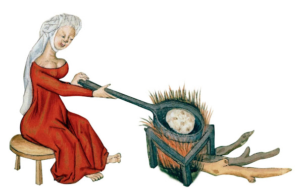 Una mujer cocina un pan elaborado con azúcar. Biblioteca Estense, Módena.
