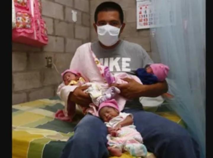 Una historia conmovedora de Hugo Alberto Vicente, es un hombre que vive en El Salvador que hace cinco meses, el 1 de mayo, se convirtió en el padre de tres niñas, pero su mujer Erika de Vicente entró en estado crítico y falleció diez días después del parto.