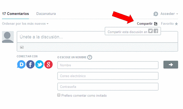 Podéis hacer vuestros comentarios a través de vuestras cuentas de Google, Facebook, Twitter, también dándoos de alta en el propio Disqus o incluso como invitado (sin necesidad de registro de ningún tipo, lo único que os pide es un nombre y un email válido).