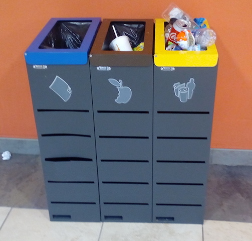 Contenedores de reciclaje en un centro comercial de Barcelona