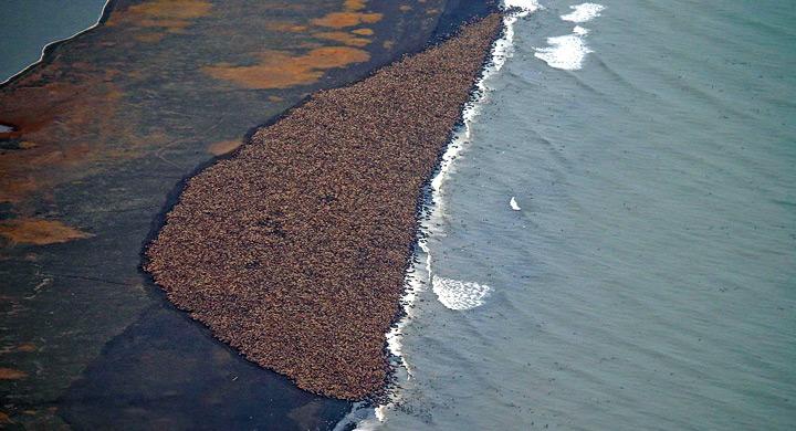 Miles de morsas se han visto obligadas a hacinarse en las costas de Alaska, cerca de la aldea de Point Lay, a causa del deshielo del Ártico provocado por el calentamiento global. El preocupante fenómeno está dañando seriamente el hábitat natural de los animales.