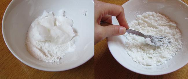 Nota: Para una consistencia más sólida, añade más bicarbonato o arrurruz; para que esté más blando, añade más aceite de coco.