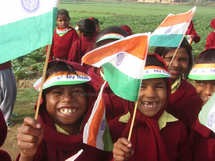 Niños de la Escuela Akshay preparados para la celebraciónHoy hemos celebrado el día de la República en el Centro Educativo Akshay.