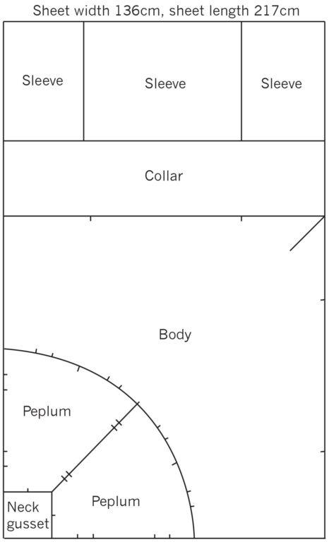 Una manera simple de disminuir el desperdicio es cortar la tela en una sola pieza en lugar de en doblez. Moviendo las piezas del patrón, acomodando las mangas o las piezas del corpiño con costura de princesa en las cuñas triangulares creadas por una falda completa.
