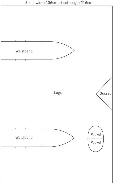 Muchos diseños cero desperdicios colocan mangas en el tejido transversal, y este principio también puede ser adoptado por la costurera doméstica (esto proporciona una visión general de las líneas del tejido). Los revestimientos del canesú se pueden unir, permitiendo el uso de trozos de tela más pequeños. Las tiras sesgas también se pueden reconstruir a partir de pequeños retazos en lugar de nuevas extensiones de tela. Los revestimientos también pueden ser cortados de los retazos de otro proyecto. Finalmente, manteniendo un patrón de bragas, sujetadores o camisola a mano mientras se distribuyen las piezas del patrón en la tela, es posible que un poco de movimiento permita obtener una pieza adicional de ese largo de tela.