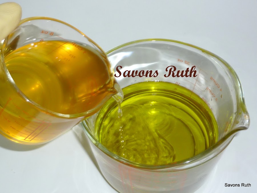 Ahora añadiremos la solución cáustica a los aceites.