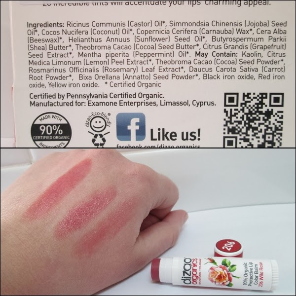 El primer producto que os presento, es su bálsamo labial con color, en el tono "206 Wild Rose". Es un bálsamo que es rico con el 90% de ingredientes orgánicos.