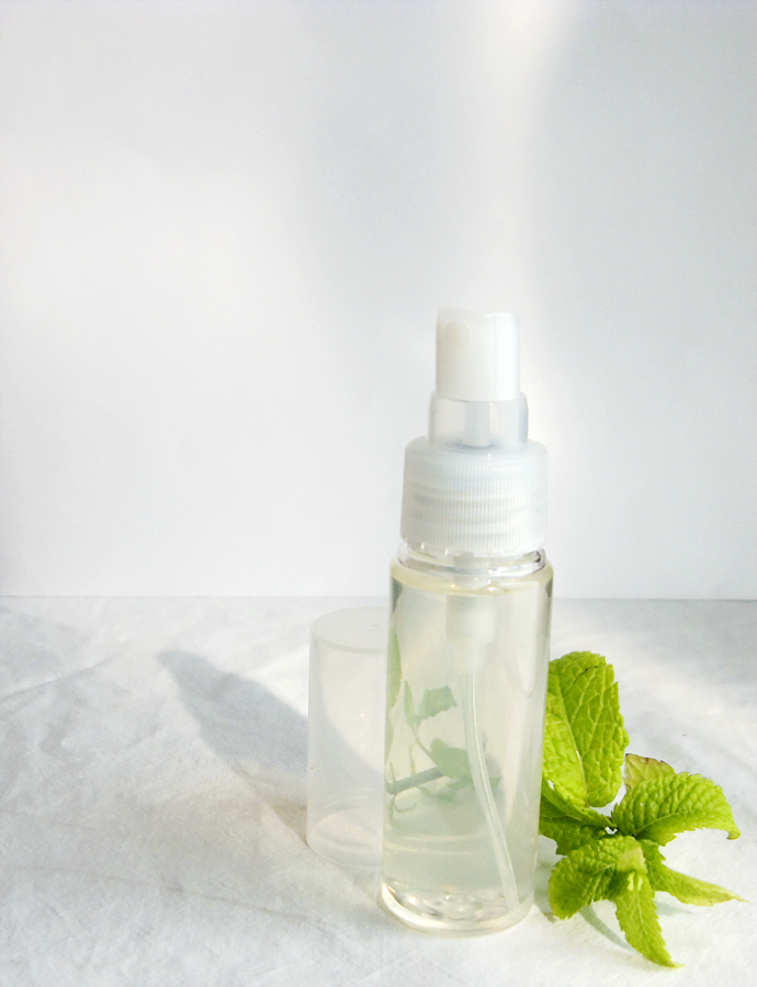 *Mezclad en un recipiente 90 ml de alcohol de farmacia 96º con 10 ml de aceite esencial de menta piperita y agitad. Etiquetad correctamente el producto (ingredientes, cantidades y fecha) y conservadlo preferiblemente en un recipiente con dosificador.