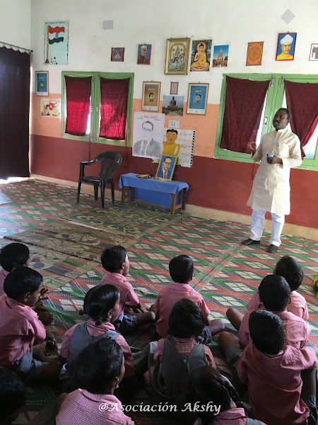 Con motivo de tan especial día en la escuela Akshay hicimos un homenaje a Dr. Ambedkar y para ello invitamos a Satyendra Manjhi, activista a favor de DDHH a que diera una charla sobre la vida de Dr. Ambedkar y sus principios.
