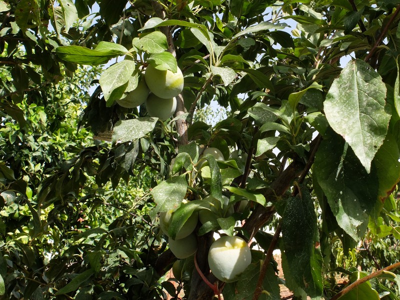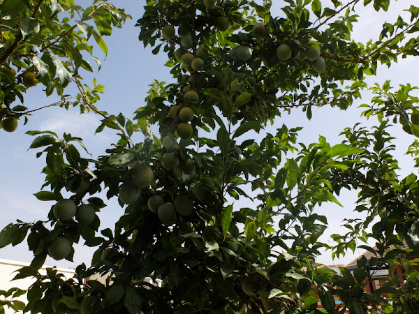 Otro árbol frutal que esta en plena producción desde a mediados de agosto es el Ciruelo Reina Claudia Verde. Este presenta una producción de ciruelas, a pesar del aclareo realizado a final de mayo, magnifica, con frutos de gran tamaños y carente de cualquier presencia de plaga o enfermedad. Quizás, por decir algo negativo, se observa algún fruto picado por pájaros que convive por el huerto, como es el mirlo. La gran cantidad de frutos que presenta el árbol, hará que pueda disfrutar de esta excelente fruta durante gran parte del mes de septiembre.