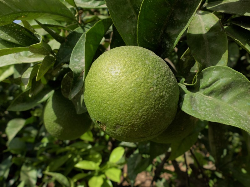 Y por ultimo, como es habitual, el ultimo frutal que tengo el huerto y que empezará a dar sus frutos durante el mes de octubre y que durará hasta bien entrado el próximo años, se trata de las Naranjas. Su tamaño, como se puede observar a continuación, ya alcanza el tamaño bastante bueno y próximo a iniciar su maduración.
