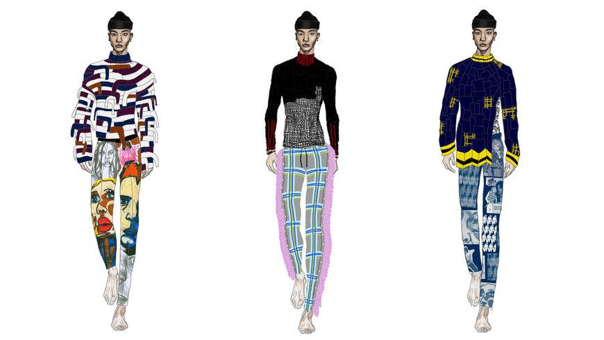 Se inspiró en diferentes subculturas y la forma en que las personas se expresan a través de sus elecciones de ropa. Aplica las técnicas de diseño de up-cycle y zero-waste a fin de rollos de la industria, personalizando su vanguardista y andrógina colección mediante el uso de tintas y pinturas ecológicas.