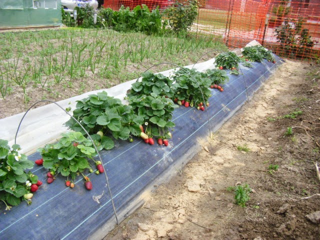 Cada 15 dias, las destapo para recolectar una buena cosecha de fresas. En la siguiente foto se puede apreciar, tras retirar el túnel de plástico, la gran presencia de fresas maduras que presentan las plantas.