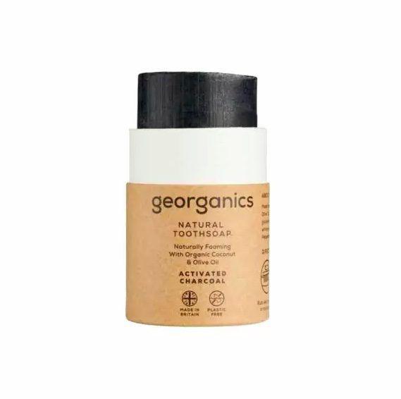 Se trata de una barra (como si fuera un jabón) envasada en cartón, así que es 100% libre de plástico y el envase es biodegradable. Es de la marca Georganics.Aunque su sabor al principio puede parecer extraño, te acabas acostumbrando y deja una agradable sensación a frescor, aunque lógicamente no es tan fuerte ni artificial como la de las pastas convencionales.