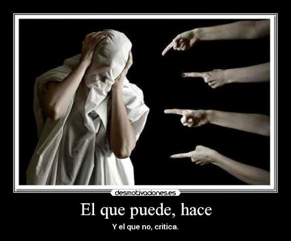 No tengo la respuesta ¡ojalá! Pero pienso que es algo que todos, en mayor o menor medida nos preguntamos. Porque todos en mayor y menor medida también, recibimos críticas, y ¡ojo! También las hemos hecho seguramente, quien esté libre de pecado que tire la primera piedra. Pero una cosa es una crítica puntual y, rectificar si hace falta y, otra, es la crítica como hábito, la crítica como conversación y, modo de vida. La crítica dañina, consciente e inconscientemente (y sobre esto habría mucho discutible) porque es cierto que existe la crítica constructiva, pero a veces se disfraza bajo ésta para, hacer una crítica destructiva, es decir, se utiliza como excusa el término "crítica constructiva" para hacer daño de forma dañina, bien textualmente o, bien en actos.