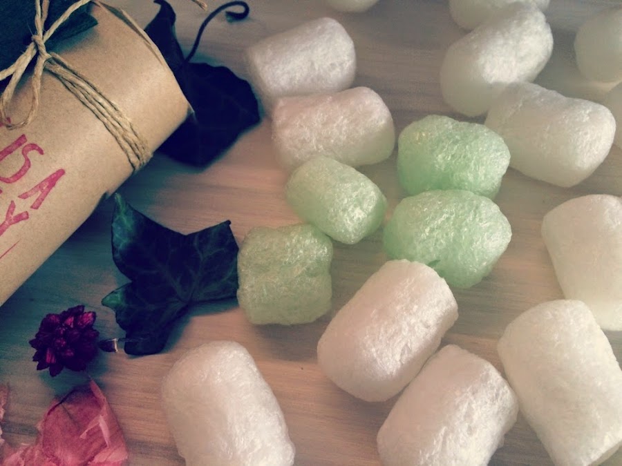 Chips de embalaje biodegradables y compostables: cuando abrís vuestro pedido lo primero que seguramente os llame la atención sean esos pequeños chips blancos y verdes. Y tal vez penséis: "poliestireno???!!!" Nada más lejos de la realidad!!!! Se trata de un material 100% natural y orgánico fabricado con almidón de maíz, sin CFC"s y perfecto para el compostaje (cada recurso es valioso!!!). Y lo que a mí me vuelve loca: cuando os digo que es biodegradable es que se deshace en agua!!! Mirad os lo enseño en un mini-vídeo casero!!! :)