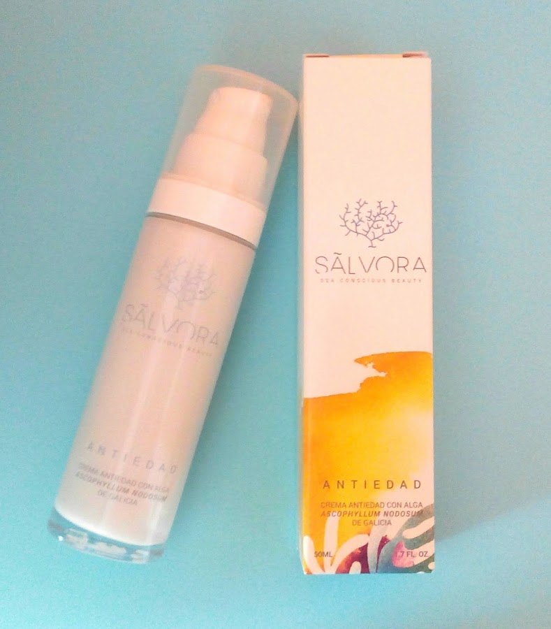 Presentación del packaging exquisita y en envase airless de cristal. En la web de Sálvora (abajísimo del todo) aparece su precio de 41 euros y su tamaño son 50 ml.