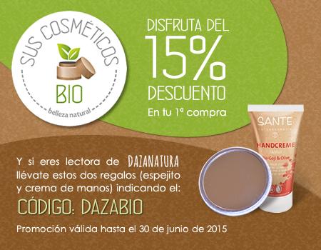 Para las lectoras de Dazanatura tenéis este descuentazo en la primera compra y un espejito y una crema de manos de regalo, con el código DAZABIO al hacer vuestro pedido online.