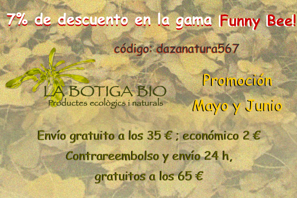 Durante los meses de mayo y junio, te ofrecen un descuento agregando el código dazanatura567 para que te animes a probarlo. Además tienen más marcas de cosmética natural y/o bio y así aprovechas el pedido.