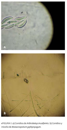 En esta ocasión, nos centraremos en los hongos nematófagos depredadores, de los cuales, alrededor de 200 especies han sido descritas; entre las más conocidas están las pertenecientes a los géneros Arthrobotrys, Monacrosporium y Duddingtonia.3 Los hongos nematófagos son microscópicos y, generalmente, saprobios; sin embargo, cuando entran en contacto con los nematodos, pueden alimentarse de ellos.