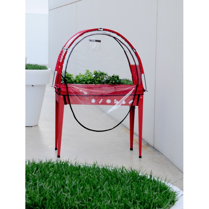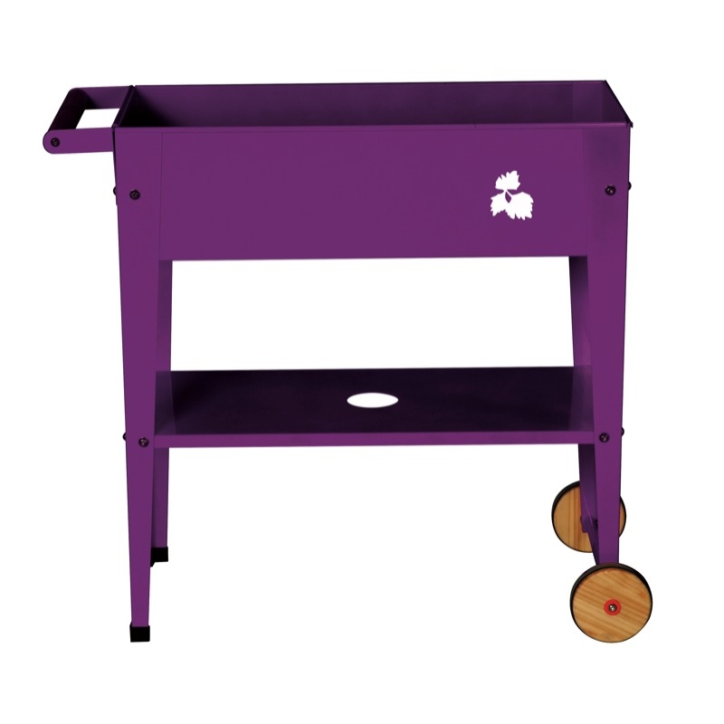 Las hay incluso de colores y con ruedas, para poder desplazarlas y es práctico que incluyan debajo una bandeja para dejar los utensilios de cultivo (rastrillo, regadera, pala) y tener todo organizado y limpio, porque cuando algo tiene su sitio está ordenado.