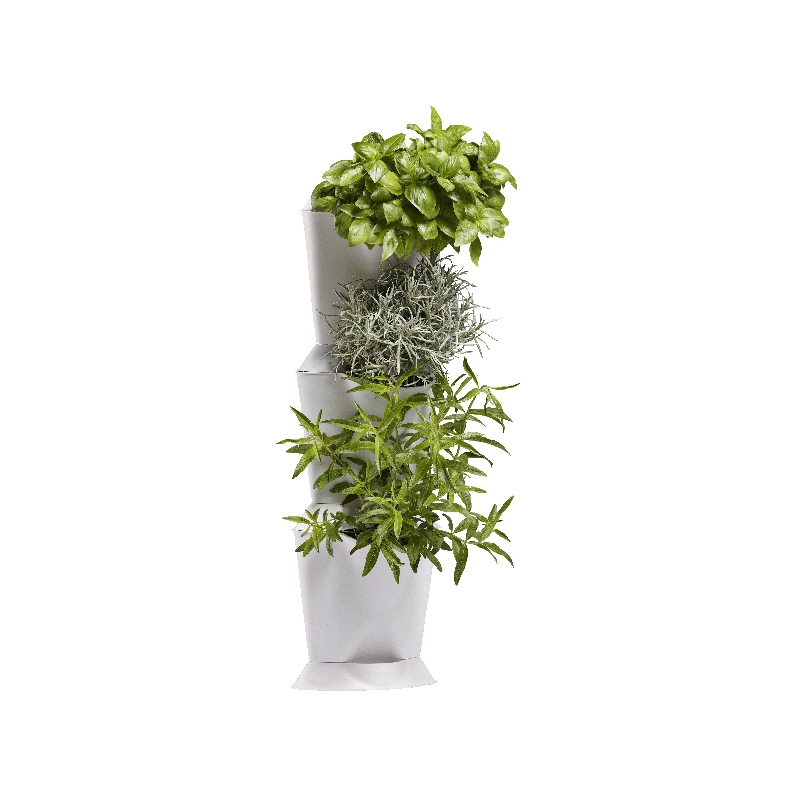 Si no tenemos sitio en la terraza o esta es muy pequeña, me encantan este tipo de recipientes a modo de esquineras, para poner en un rincón de la encimera o de la mesa o incluso en un hueco del salón. Existe una versión mucho más grande, a modo de jardín vertical, perfecto para espacios mayores.