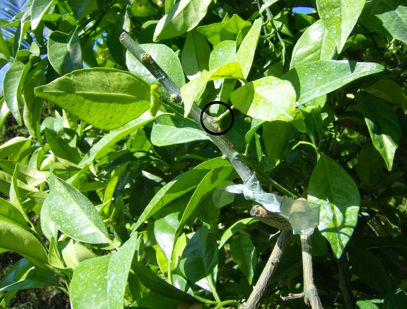 Actualmente, los injertos están plenamente consolidados en su unión a la rama patrón, pudiendo soportar el desarrollo de las ramas y pesos de los limones que ha echados.