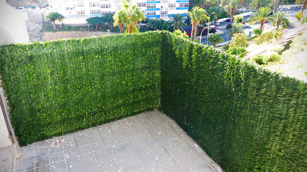 Esta es mi terraza, como puedes ver tiene una valla de hierro que le confiere un ambiente muy frío, además deja pasar todo el aire y no proporciona intimidad.Lo vamos a solucionar con el seto artificial Hidenatur de Catral Garden.