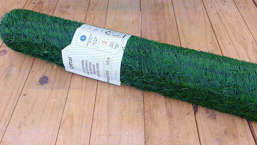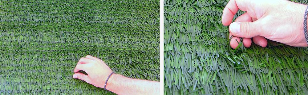 Está desarrollado con fibras de última generación creando un aspecto muy natural, frondoso y de tonos homogéneos que garantiza un nivel de ocultación máximo, además tiene protección contra la radiación ultravioleta. Mide 1 metro de alto por 3 de largo.
