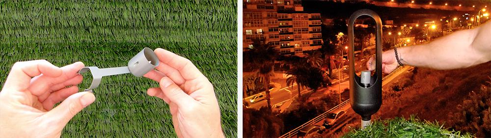 Con su mecanismo OneClick! fijamos la lámpara rápidamente y de manera segura. Además de ella y de la antorcha podemos fijar cualquiera de sus otros 4 accesorios diferentes como el comedero de pájaros, el florero, la casa de insectos o el baño para pájaros.
