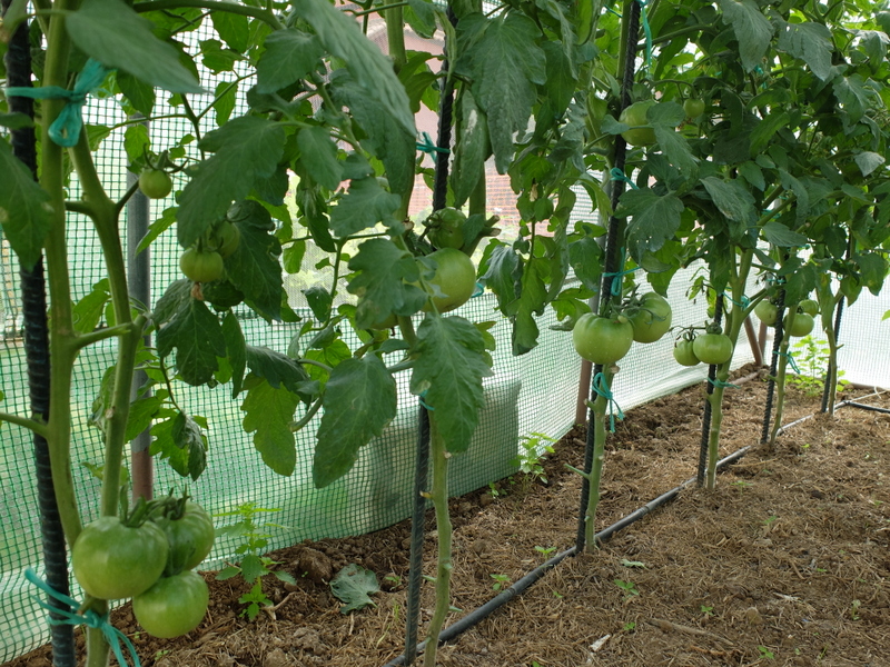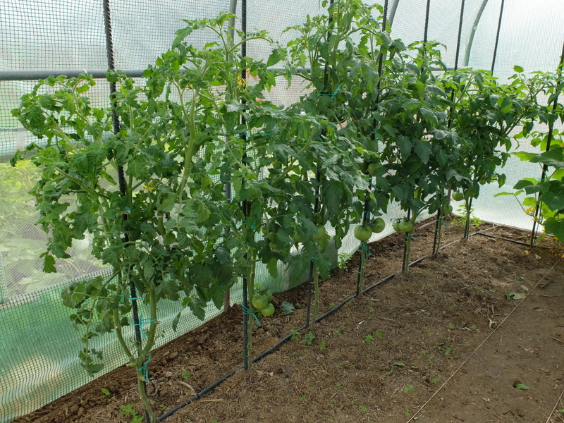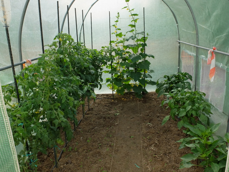 Actualmente, todas las plantas que tengo en su interior, presentan un desarrollo vegetativo muy avanzados y todas tienes ya sus frutos muy próximos para comenzar a recogerse.