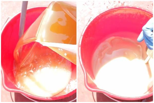 En el cubo de plástico limpio, añadiremos el agua