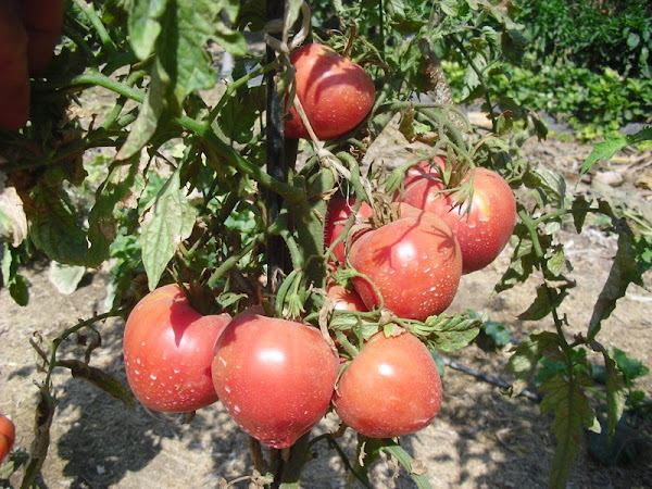 Dentro de esta segunda tanda de tomates, están destacando sobre manera por su abundante producción una variedad denominada "huevo de toro" se trata de una variedad de tomate rosado, de un atractivo sabor en boca para comerlo crudo.