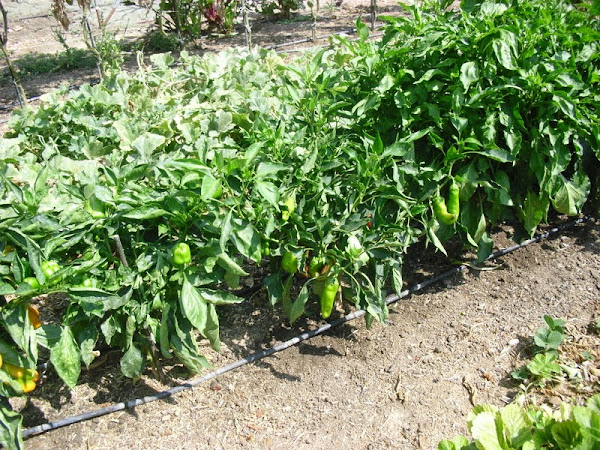 Los pimientos siguen en plena época de cosecha, destacando entre las diversas variedades que tengo plantadas, el cuernicabra por la constante producción de pimientos