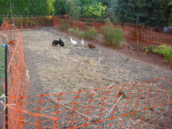 Y para terminar, comentar que estoy aprovechando esta época del año en donde se queda zonas del huerto vacía, para vallar las y dejar que las gallinas ande a sus anchas por esas zona, en donde las aprovecho para echarles de comer sus verduras. Además de su labor de limpieza de todo tipo de insecto que haya o caiga en la zona, realizan su abonado con sus deposiciones continuas que realizan.