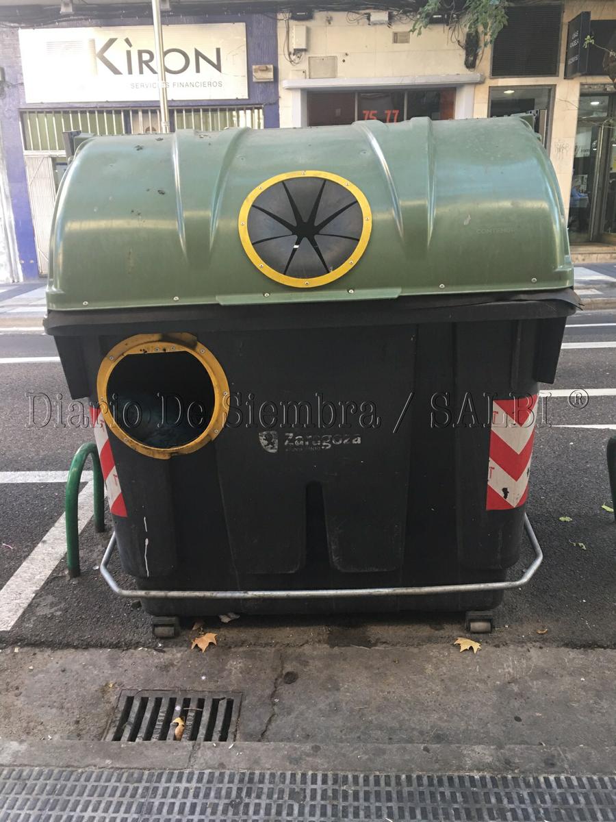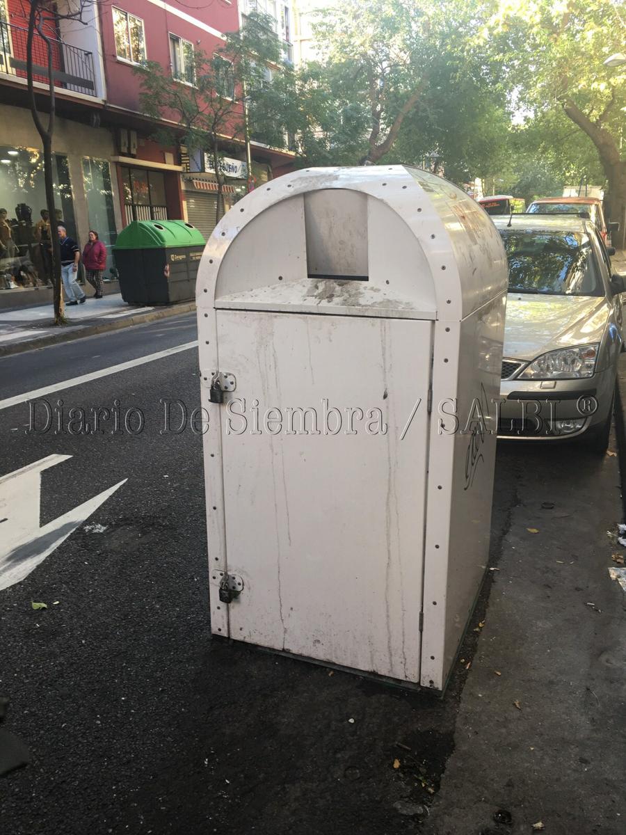 El contenedor BLANCO pequeño y cuadrado, destinado a residuos de aceite de cocina. ( en algunas localidades lo he visto color NARANJA ).
