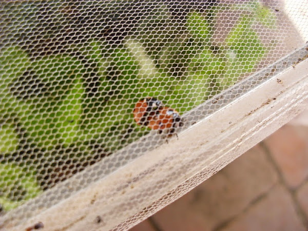 La mariquita de siete punto, cuyo nombre cientifico es Coccinella septempunctata, es una gran amiga de los hortelanos por ser una gran depredadora natural del pulgón, por lo que hay que favorecer la presencia en nuestros huerto, colocando o construyendo refugios donde estos insectos podrán sobrevivir al invierno. En mi caso, el vallado de tuyas que rodean mi huerto, es una zona que favorecen su refugio y lugar para su reproducción