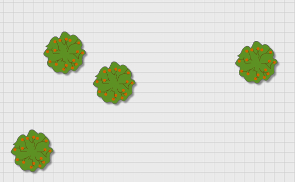 -Existen dos formas de que los elementos de un jardín en número par tengan mayor naturalidad. La primera es que los elementos sean diferentes en tamaño, la segunda es que las distancias entre los elementos sea distinta (esta forma se usa a partir de los 4 elementos). Ver el siguiente ejemplo, este conjunto de 4 árboles es de 3+1: