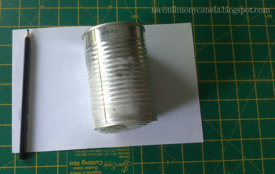 Para que el diseño de la lata quede bien, utilizad una hoja con cuadrícula, cortad al tamaño de la lata, y dibujad lo que queráis que se vea iluminado. Lo podéis hacer antes de congelar la lata, aunque yo lo hice después...