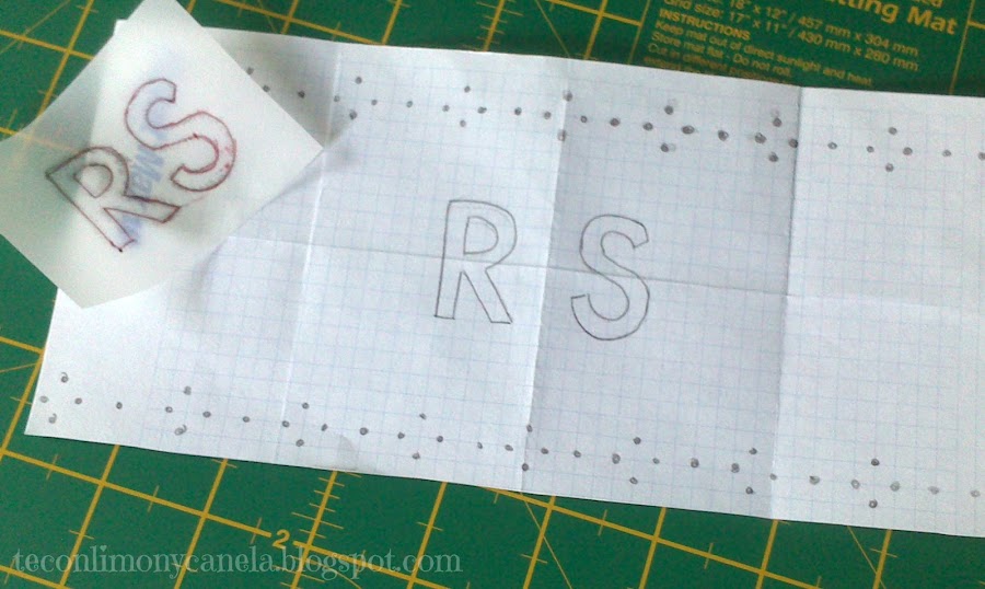 Para hacer las iniciales de nuestros nombres, calqué en papel cebolla las letras de la portada de una revista y las pasé a la hoja/plantilla.