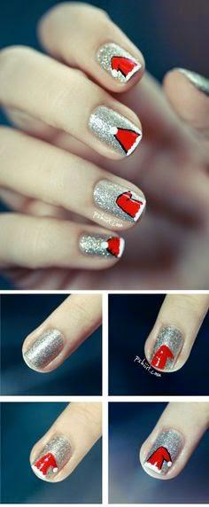 Divertida, alocada y muy sencilla es esta otra manicura navideña con gorritos de navidad!!! Una generosa base de "Platinum", un poco de "Rouge Flore" para el rojo, "Le Blanc" para los detalles blancos y "Khôl" acompañado de un pincel y buen pulso para el perfilado negro.