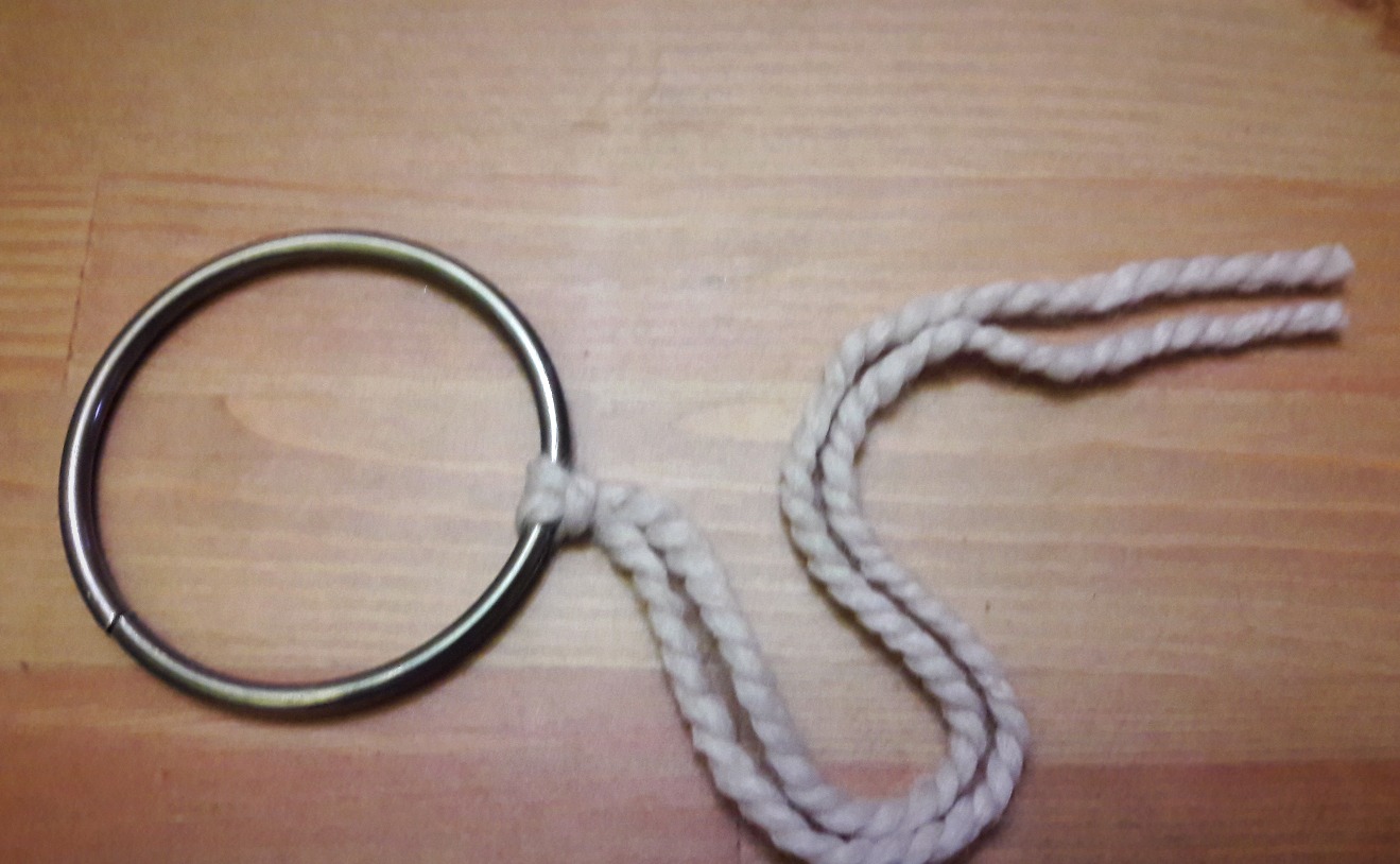 El primer paso es decidir la longitud que desea para su colgante. En mi proyecto corté los hilos de 24 pulgadas. Cortar los trozos de lana. Debes doblar las piezas de hilo por la mitad, ponga el extremo bajo y tire los otros extremos a través para asegurar. Tire con fuerza haciendo un nudo.