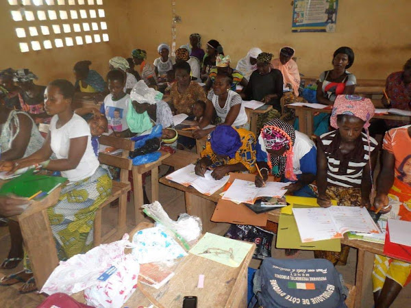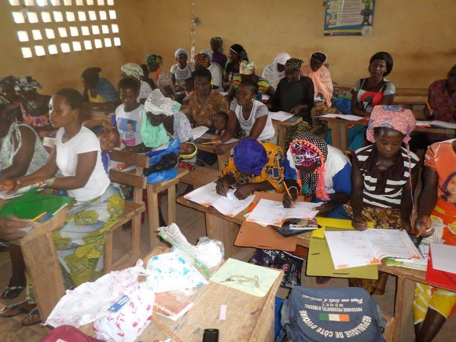 Madres de Bodouakro durante curso de alfabetización.
