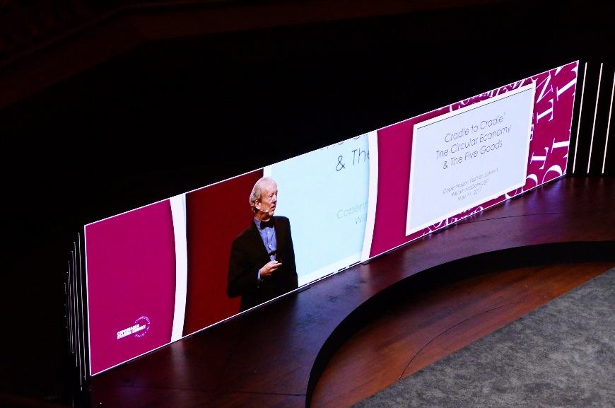 Presentación de William McDonough durante el Copenhage Fashion Summit. Fuente: Archivo personal.