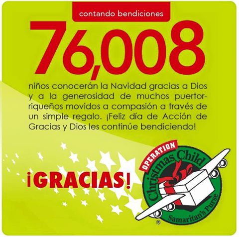 "Operación Niño de la Navidad" es un proyecto infantil navideño que se realiza desde 1990 para llevar cajas de zapatos repletas de regalos a más de 1 millón de niños necesitados en 130 paises del mundo. Adicional, estas cajas llevan la "Palabra de Dios" y su mensaje de amor. Puedes obtener más información aquí.
