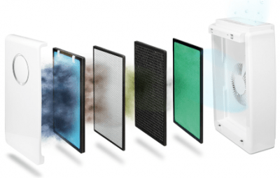 El pre filtro atrapa las partículas de aire más grandes ,después el aire pasa por un filtro de carbono que ayuda a reducir los olores y captura las partículas de mayor tamaño.