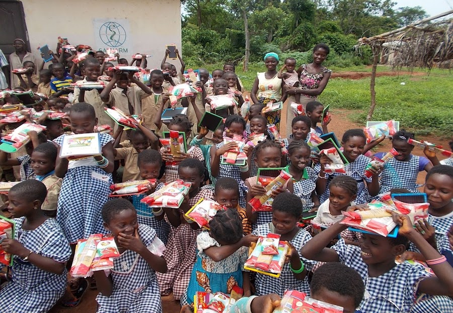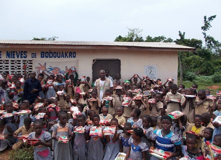 La tardanza en la entrega de regalos se debió a la huelga de profesorado a nivel nacional en Costa de Marfil. Dos meses han estado los niños sin asistir a la escuela, dos meses que aprovecharon para ayudar a sus familias en los campos e ir a visitar a familiares en otros campamentos.