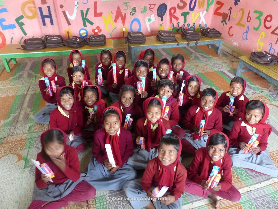 Cada niño ha recibido un cepillo de dientes y una pasta dental. Mediante estos talleres queremos crear el hábito entre los niños para que cuiden su higiene bucal y animarles a aprender buenos hábitos.