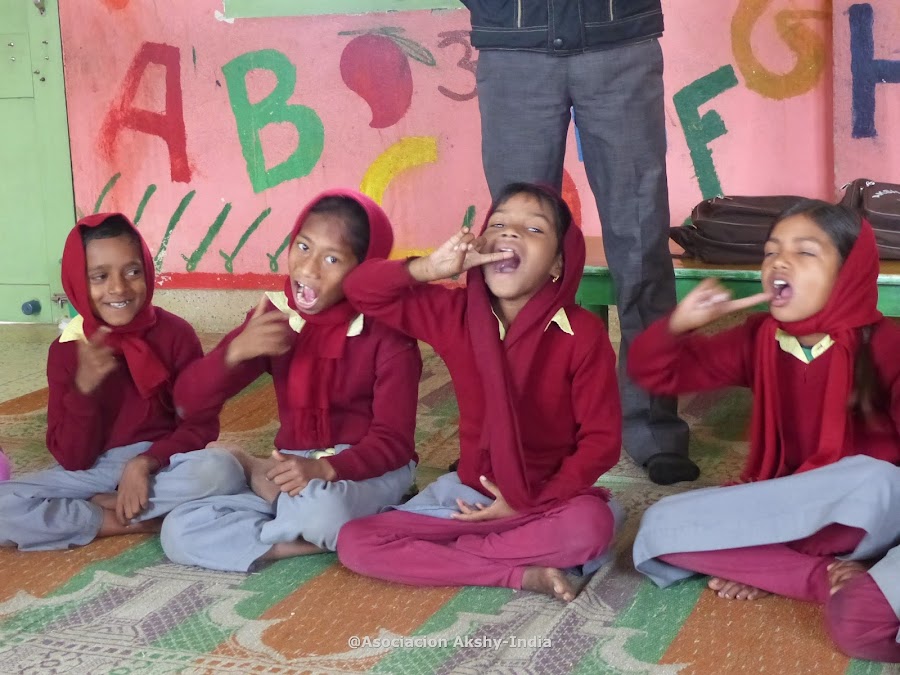 Además también hemos empleado esta donación extra para realizar una taller de limpieza dental. En este taller Ranjan ha explicado a los niños primero cuales son los problemas cuando no se lavan los dientes, qué alimentos producen caries y cómo se utiliza el cepillo de dientes. Los niños han aprendido muy bien la lección y¡han prometido lavarse los dientes todos los días! El taller tendrá lugar toda la semana cubriendo las distintas clases.